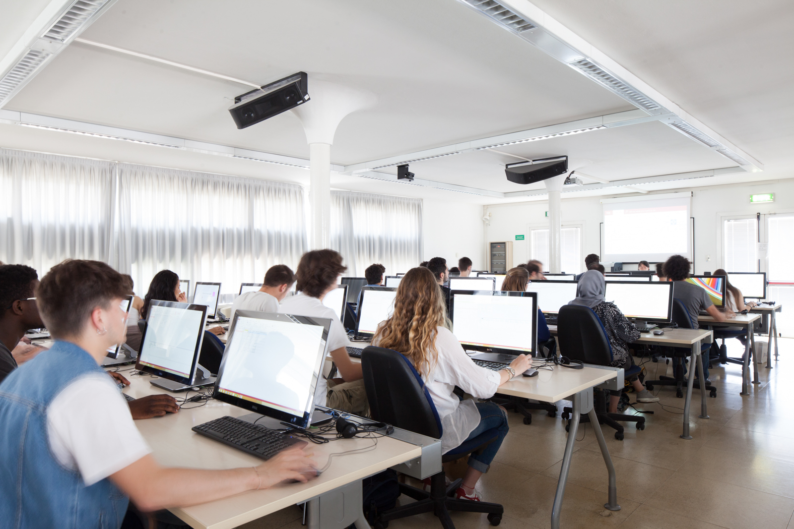 Among the classrooms, in Building D, there is the main lecture hall (with a capacity of 275 seats). There are 8 computer labs available.